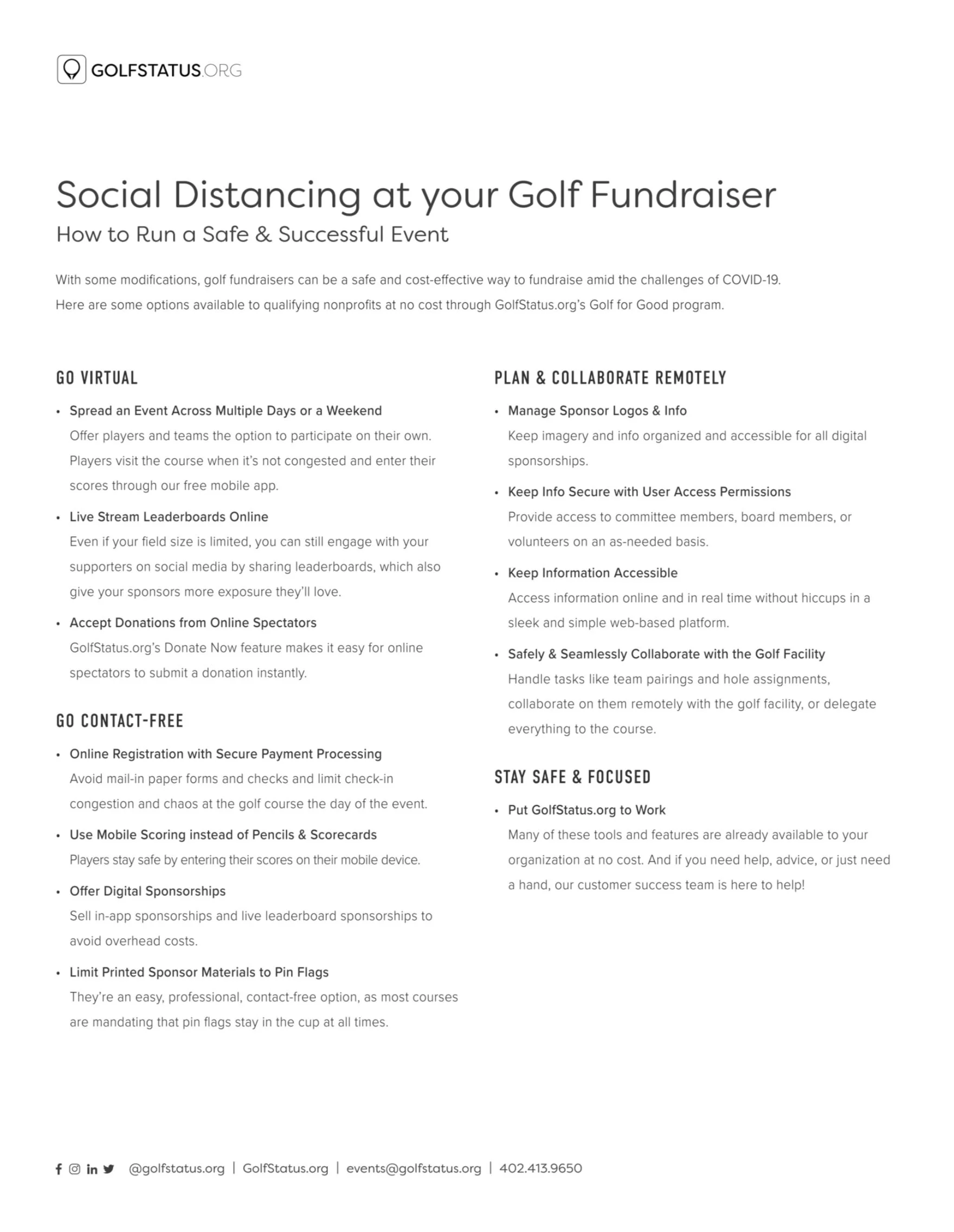 As a way to help nonprofits run golf fundraisers for their organizations, the marketing team puts together resources (white papers, case studies, templates, guides, etc.) that help them learn, share, and execute their golf fundraiser.